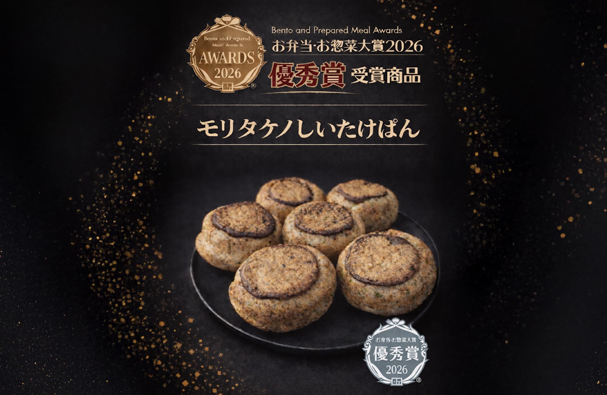 全国スーパーマーケット協会が年に一度開催している「お弁当・お惣菜大賞2026」のパン部門において、『モリタケノしいたけパン』が優秀賞を受賞。